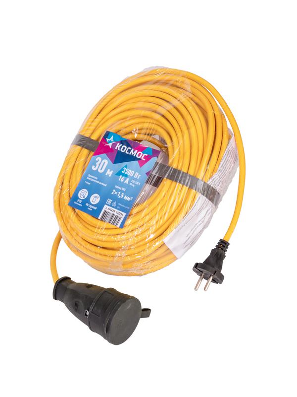 Удлинитель-шнур 1х30м 16А IP44 220В 3.5кВт ПВС 2х1.5 УХ16 Россия КОСМОС YSHKsm30m-1g(16A)S