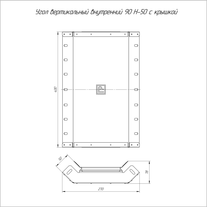 PR16.0601 | Угол вертикальный внутренний 90град. 400х50 с крышкой Стандарт Промрукав
