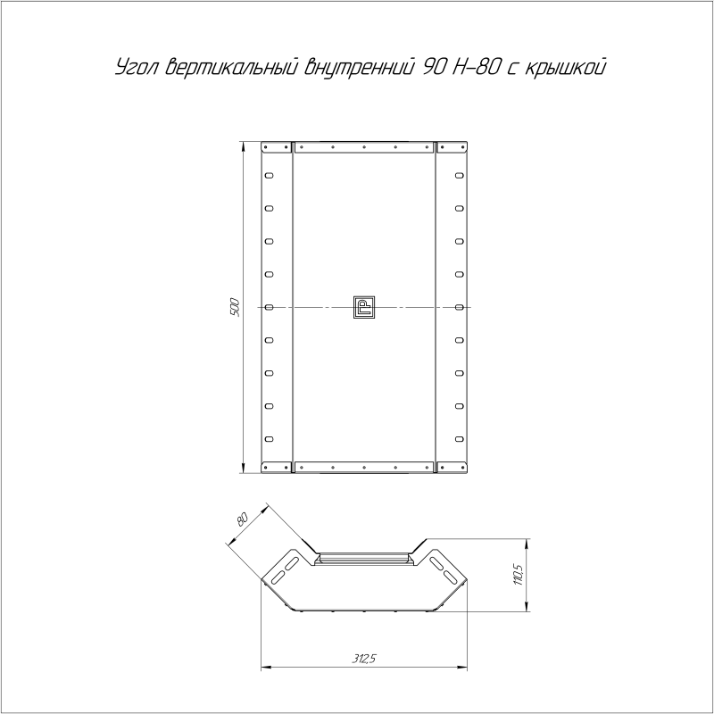 PR16.0605 | Угол вертикальный внутренний 90град. 500х80 с крышкой Стандарт Промрукав