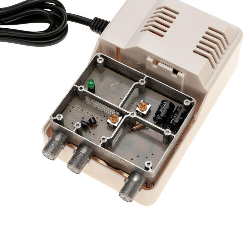 Корпус антенного усилителя выполнен из ударопрочного АБС-пластика.