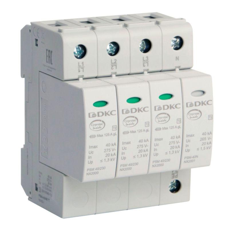 NX2041 | Устройство защиты от импульсных перенапр. (УЗИП) класс II 4п L1-L2-L3-N-PE 40кА (8/20) DKC