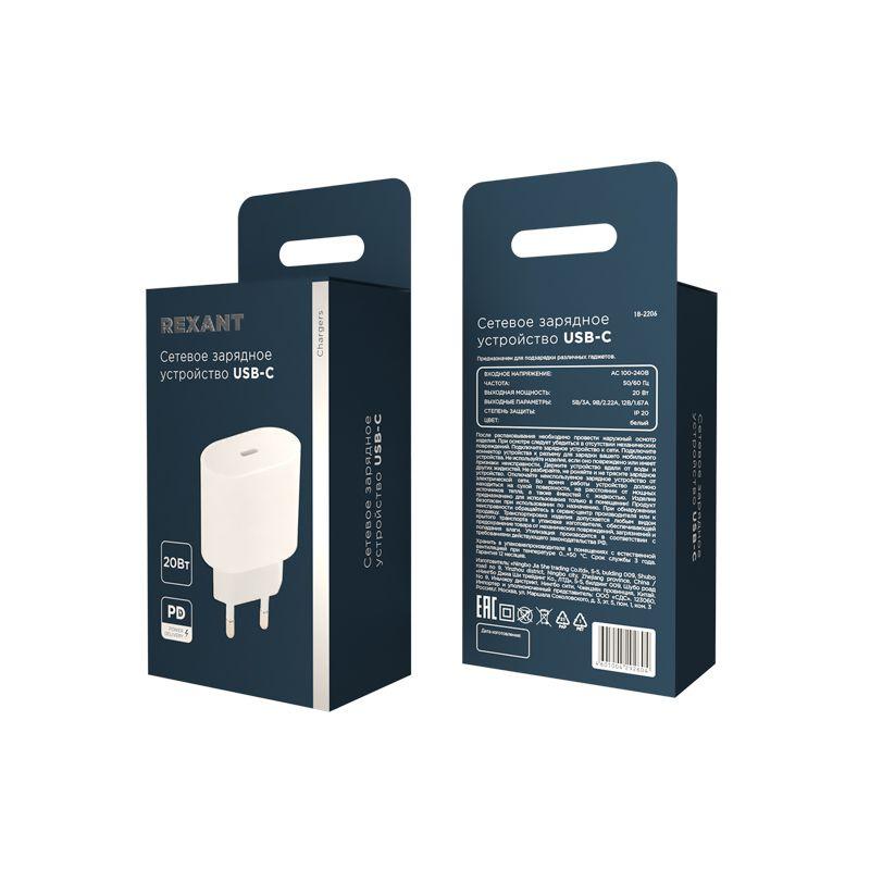 Устройство зарядное сетевое с одним портом USB-C 20Вт Rexant 18-2206