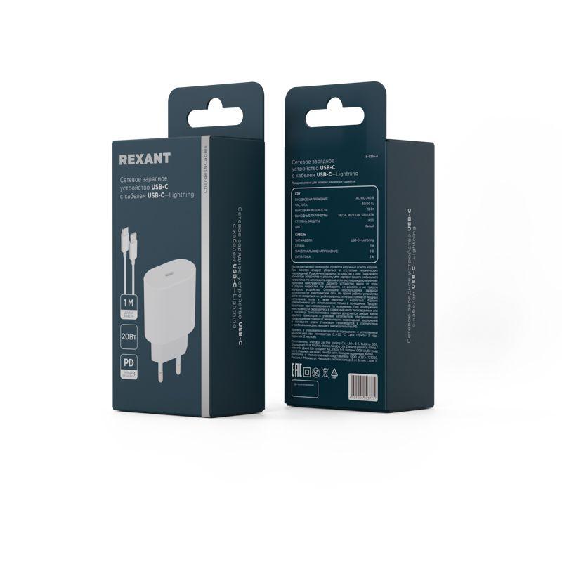 16-0234-4 | Устройство зарядное сетевое USB-C 20Вт в комплекте с кабелем USB-C - Lightning Rexant