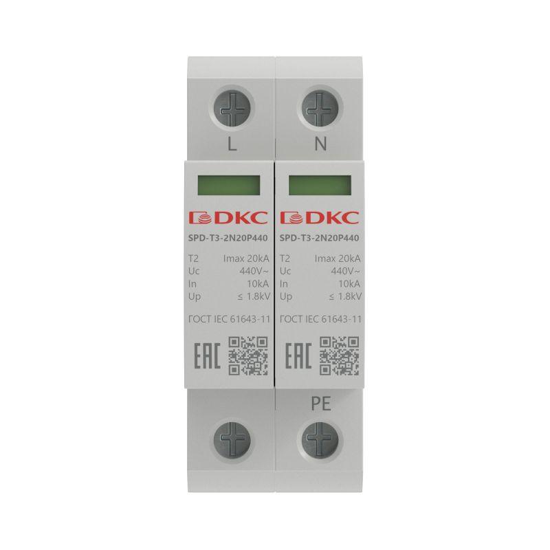УЗИП тип 3 2п Imax 20кА со сменным модулем Un 440В DKC SPD-T3-2N20P440