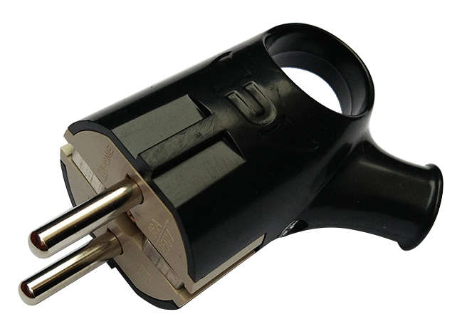 Вилка угловая с кольцом с заземлением 16А черн. 4220 IN HOME 4690612009155