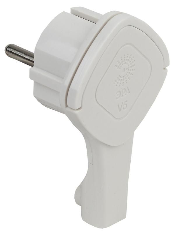 Б0026331 | Вилка V5(U) ультраплоская с заземл. 16А с кольцом белая ЭРА