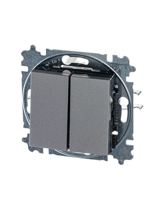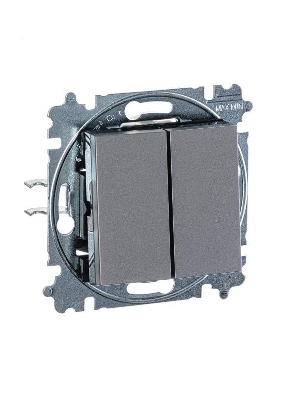 Выключатель 2-кл. СП Levit IP20 сталь/дым. черн. ABB 2CHH590545A6069