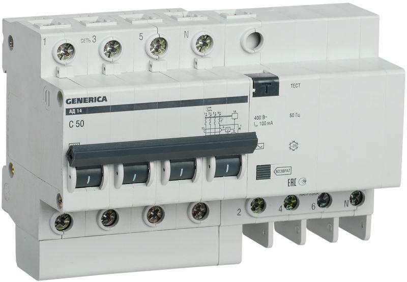MAD15-4-050-C-100 | Выключатель автоматический дифференциального тока 4п 50А 100мА АД14 GENERICA