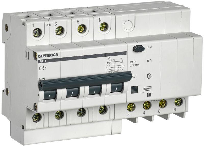 MAD15-4-063-C-100 | Выключатель автоматический дифференциального тока 4п 63А 100мА АД14 GENERICA