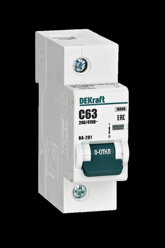 13001DEK | Выключатель автоматический модульный 1п C 63А 10кА ВА-201 DEKraft