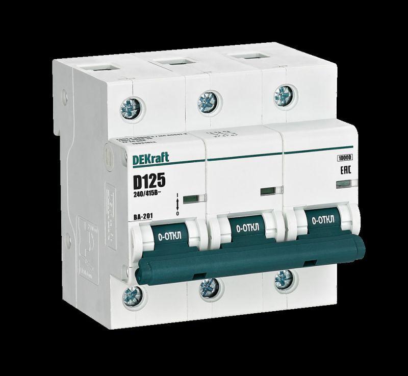 13031DEK | Выключатель автоматический модульный 3п D 125А 10кА ВА-201 DEKraft