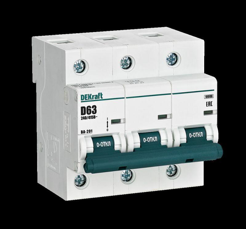 13019DEK | Выключатель автоматический модульный 3п D 63А 10кА ВА-201 DEKraft