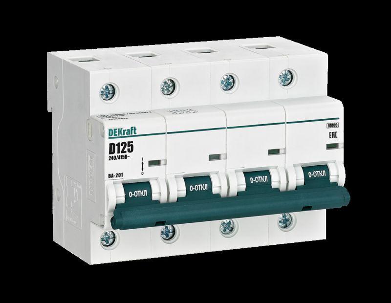 13032DEK | Выключатель автоматический модульный 4п D 125А 10кА ВА-201 DEKraft