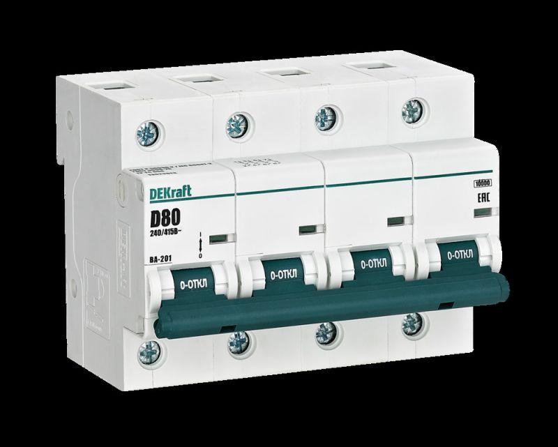 13023DEK | Выключатель автоматический модульный 4п D 80А 10кА ВА-201 DEKraft