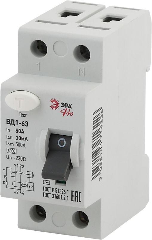 Выключатель дифференциального тока (УЗО) 1P+N 50А 30мА ВД1-63 Pro NO-902-41 ЭРА Б0031886 можно приобрести в магазине Планета Электрики по выгодной цене. Производитель Эра.