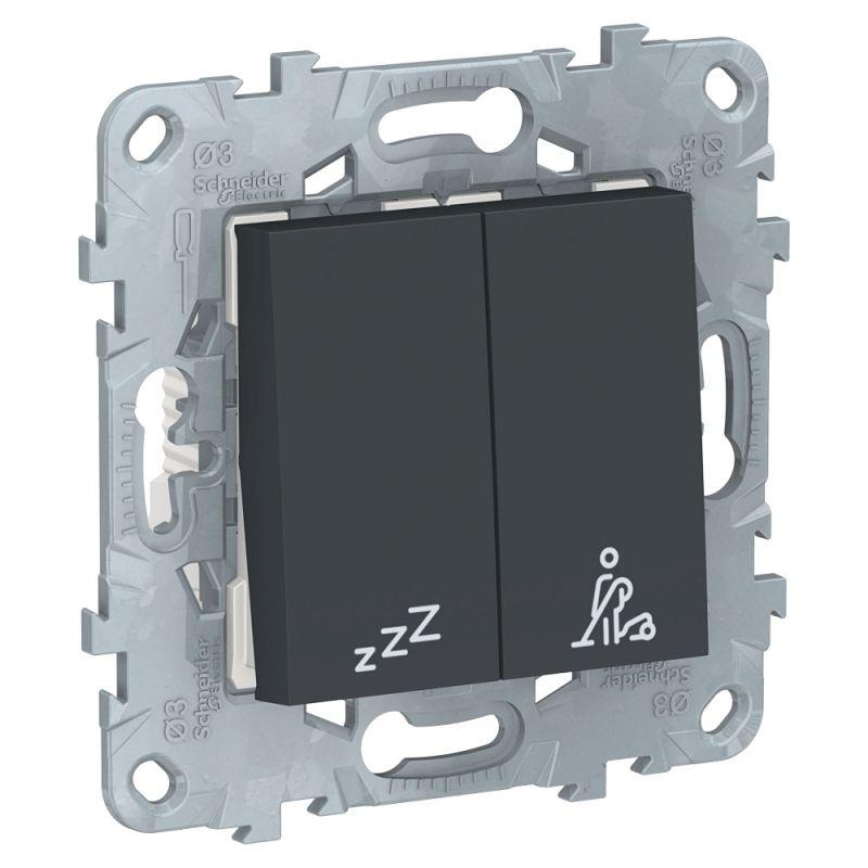 NU521754 | Выключатель кнопочный 2-кл. 2мод. СП Unica New IP21 "Не беспокоить - Убрать номер" антрацит SchE