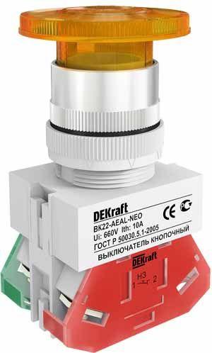 Выключатель кнопочный "Грибок" AELA ВК-22 d22мм 220В неон желт. DEKraft 25031DEK