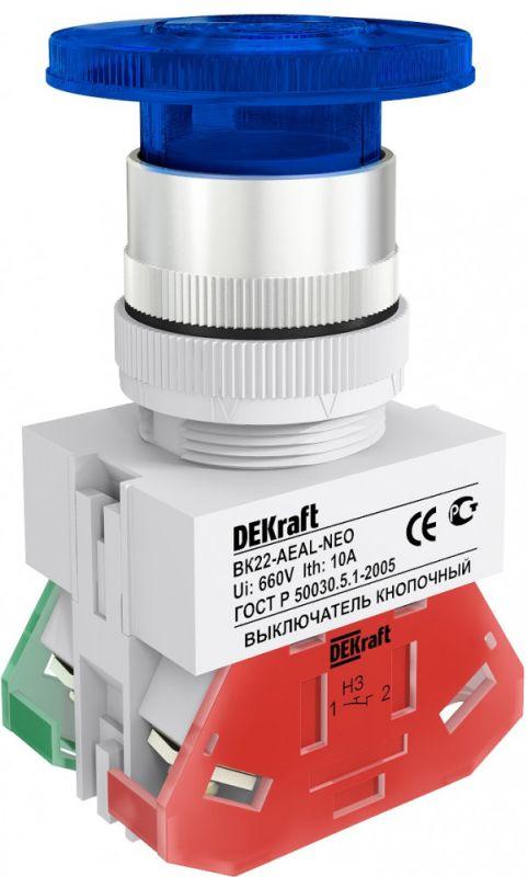 Выключатель кнопочный "Грибок" AEAL ВК-22 d22мм с фиксацией син. DEKraft 25036DEK