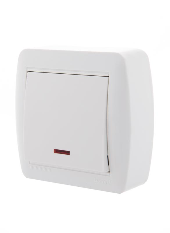711-0200-111 | Выключатель 1-кл. ОП Demet 10А IP20 с подсветкой бел. LEZARD