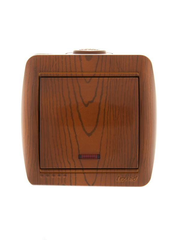 710-0800-111 | Выключатель 1-кл. ОП Nata 10А IP20 с подсветкой сосна LEZARD