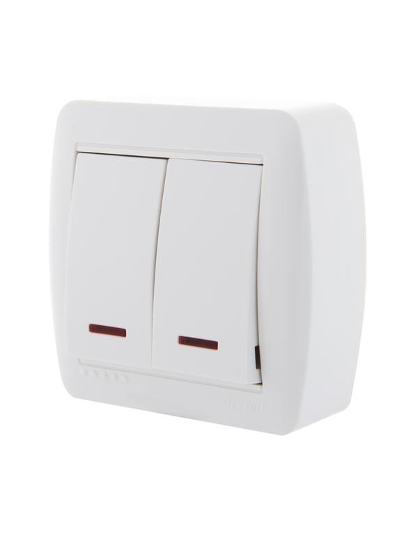 711-0200-112 | Выключатель 2-кл. ОП Demet 10А IP20 с подсветкой бел. LEZARD