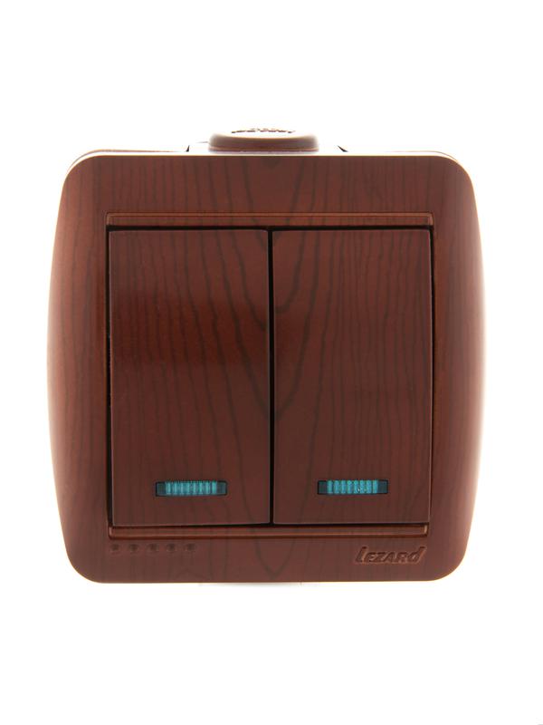 710-0600-112 | Выключатель 2-кл. ОП Nata 10А IP20 с подсветкой вишня LEZARD