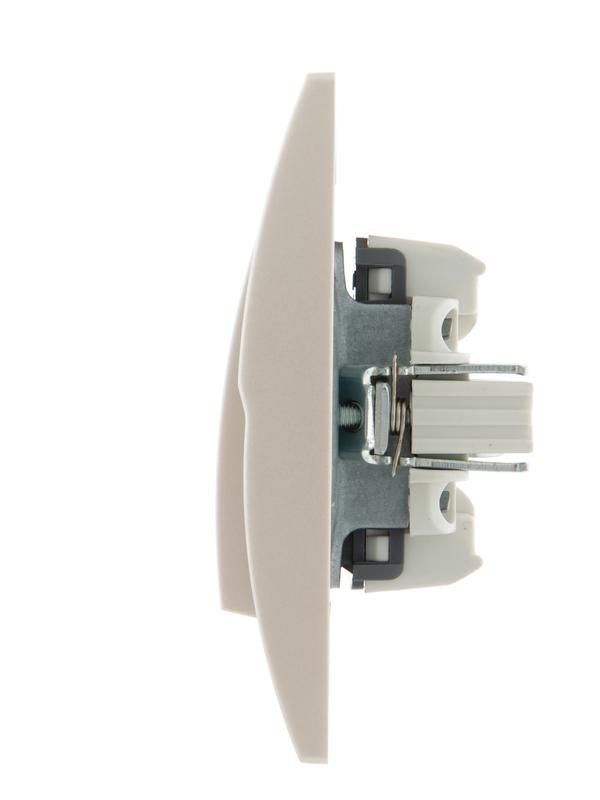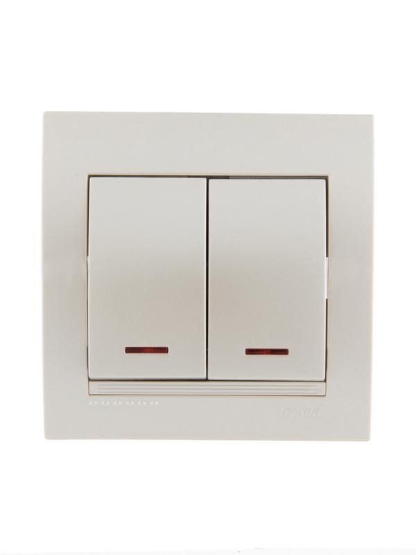 702-3030-112 | Выключатель 2-кл. СП Deriy 10А с подсветкой жемчуж./бел. метал. LEZARD