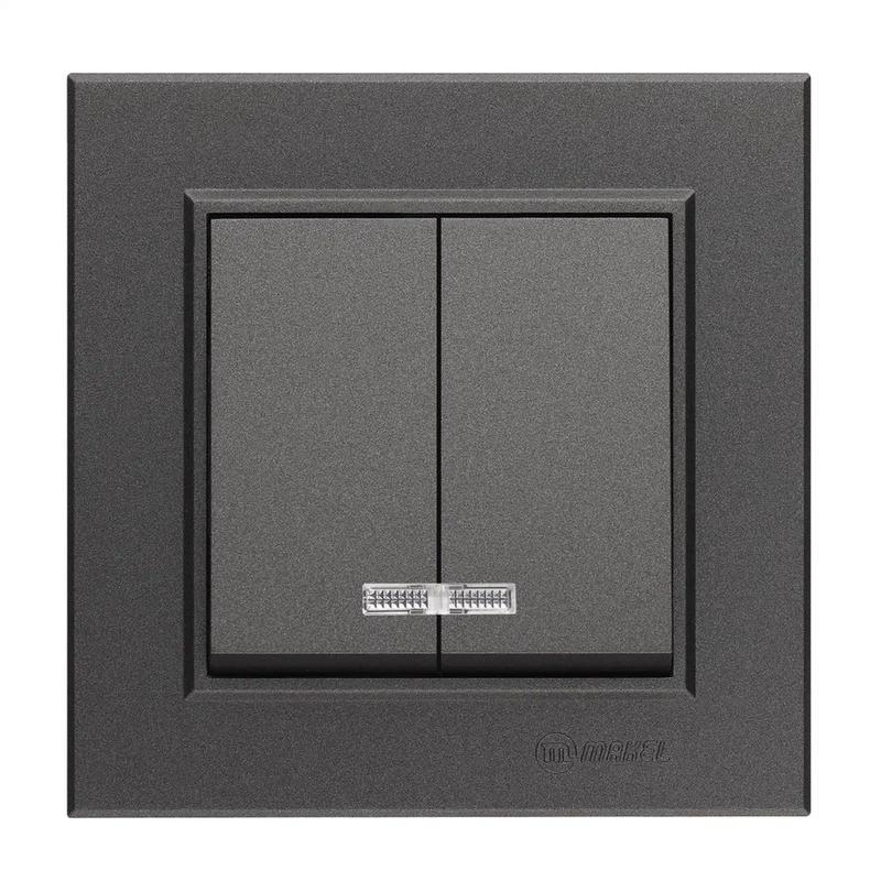 56050023 | Выключатель 2-кл. СП Karea 10А IP20 дым. металлик с подсветкой Makel
