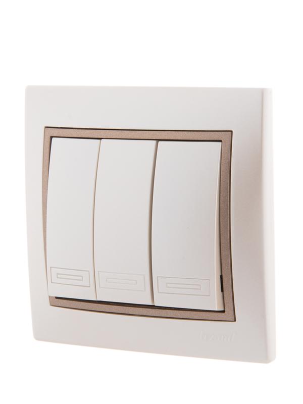 Выключатель 3-кл. СП Mira 10А жемчуж./бел./свет. корич. метал. LEZARD 701-3031-109