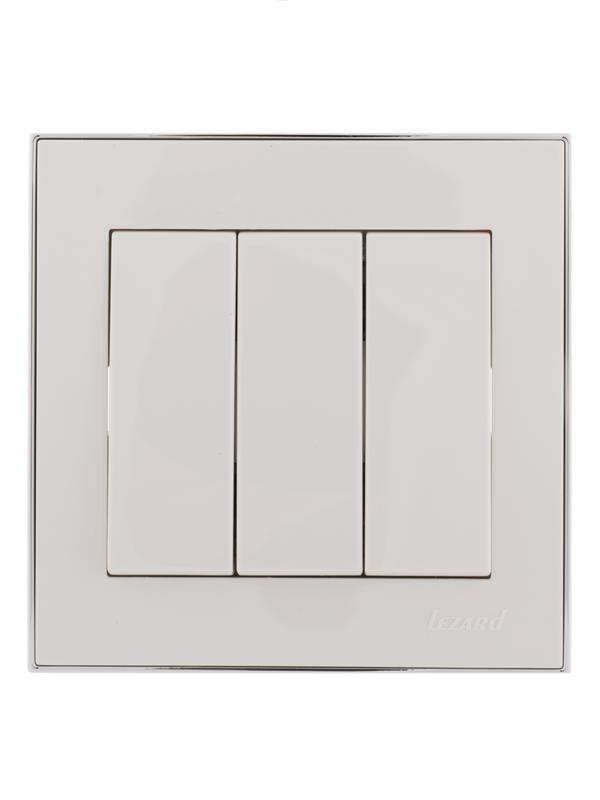 Товар Выключатель 3-кл. СП Rain 10А IP20 с хром. боковой вставкой бел. LEZARD 703-0225-109 доступен с доставкой по г. Санкт-Петербург, Ленинградской области и территории РФ, или самовывозом.
