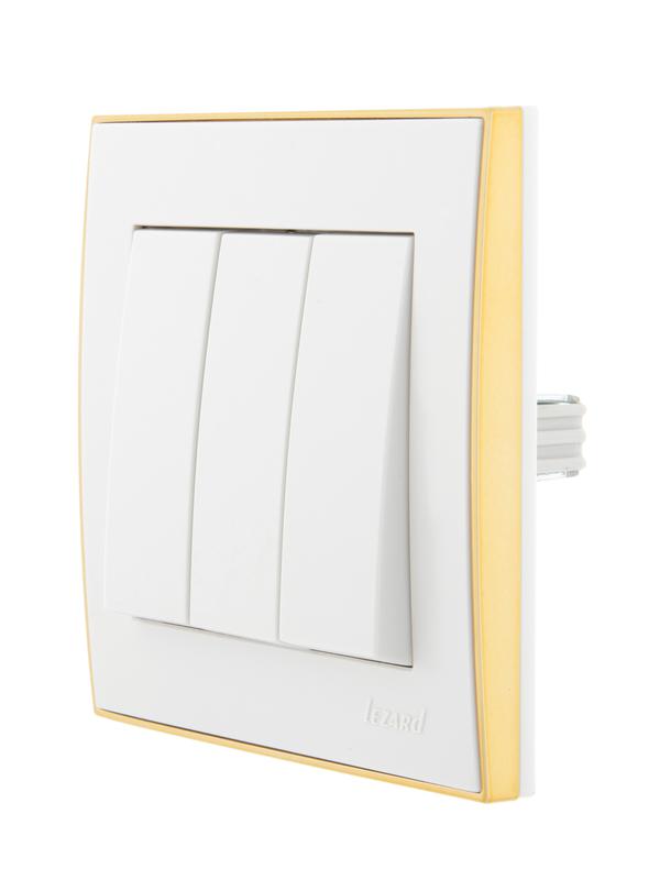703-0226-109 | Выключатель 3-кл. СП Rain 10А IP20 с зол. боковой вставкой бел. LEZARD