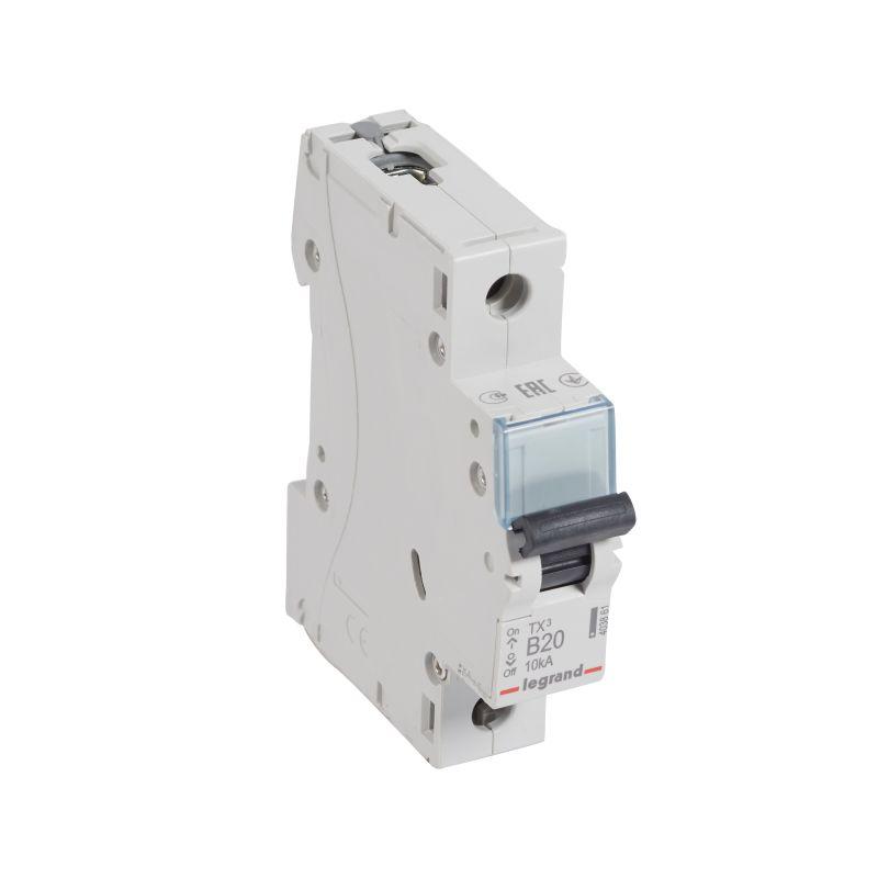 403861 | Выключатель автоматический модульный 1п B 20А 10кА TX3 6000 1мод. 230/400В Leg