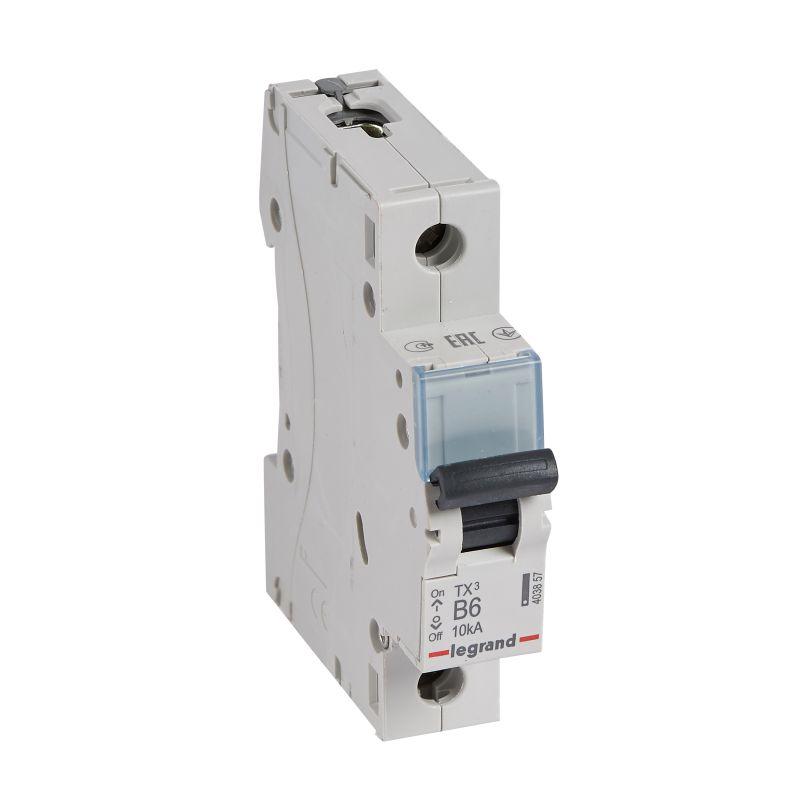 403857 | Выключатель автоматический модульный 1п B 6А 10кА TX3 6000 1мод. 230/400В Leg