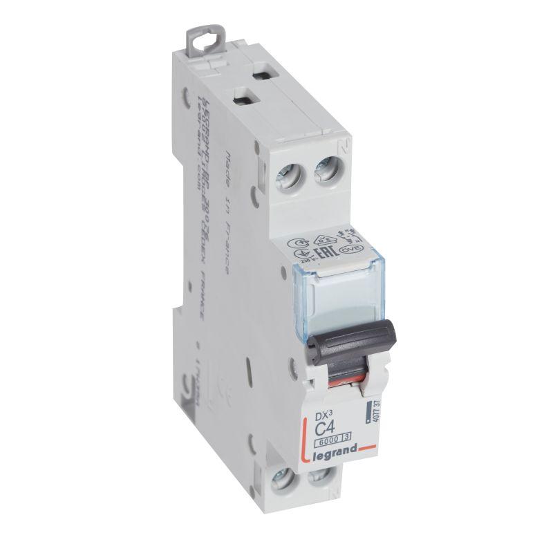 407737 | Выключатель автоматический модульный 2п (1P+N) C 4А 10кА DX3 6000 1мод. 230/400В Leg