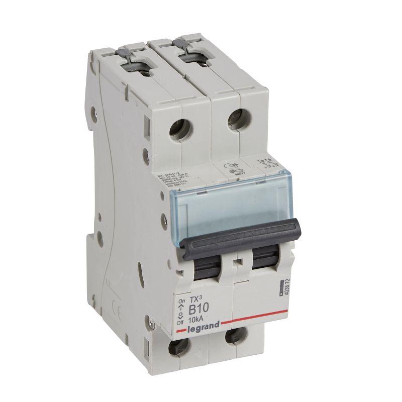 403872 | Выключатель автоматический модульный 2п B 10А 10кА TX3 6000 2мод. 230/400В Leg