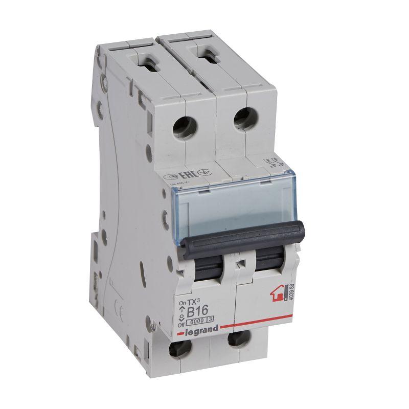 403986 | Выключатель автоматический модульный 2п B 16А 6кА TX3 6000 2мод. 230/400В Leg