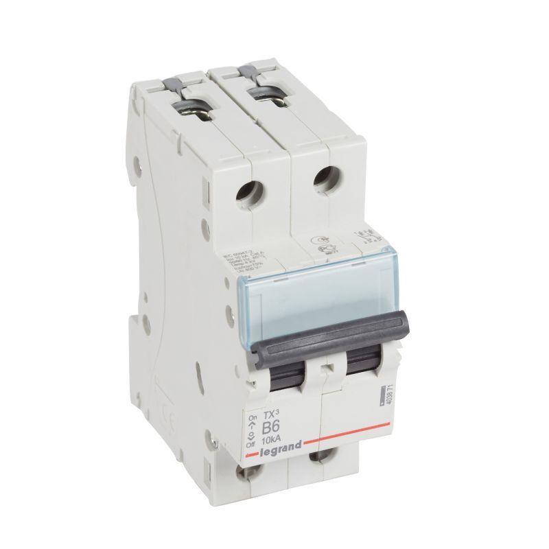 403871 | Выключатель автоматический модульный 2п B 6А 10кА TX3 6000 2мод. 230/400В Leg