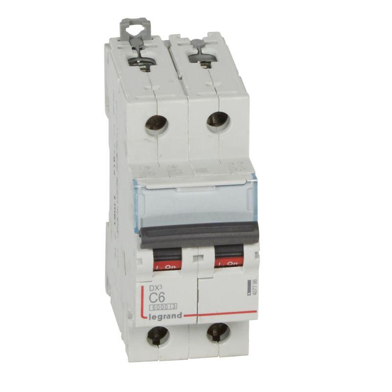 407796 | Выключатель автоматический модульный 2п C 6А 10кА DX3 6000 2мод. 230/400В Leg