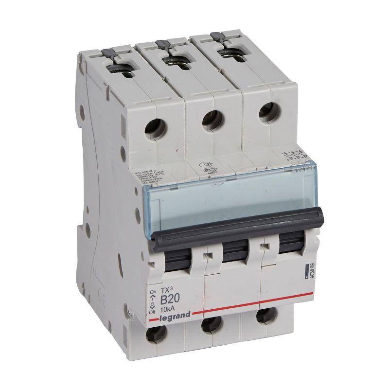 403889 | Выключатель автоматический модульный 3п B 20А 10кА TX3 6000 3мод. 400В Leg