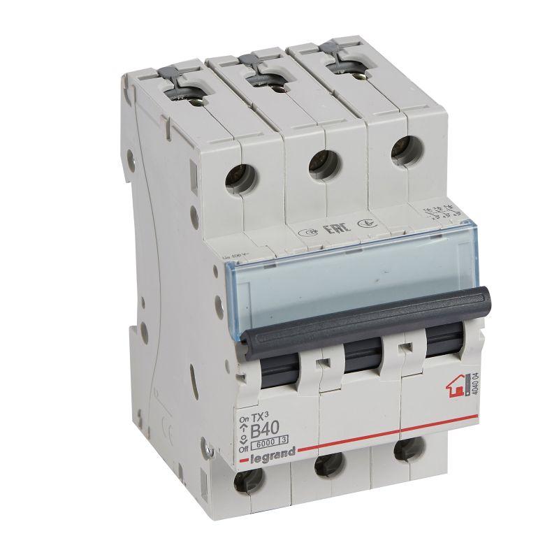 404004 | Выключатель автоматический модульный 3п B 40А 6кА TX3 6000 3мод. 400В Leg