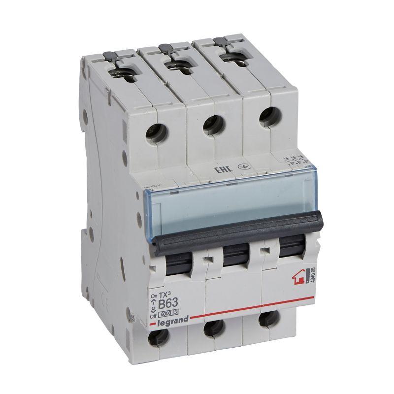 Товар Выключатель автоматический модульный 3п B 63А 6кА TX3 6000 3мод. 400В Leg 404006 доступен с доставкой по г. Санкт-Петербург, Ленинградской области и территории РФ, или самовывозом.