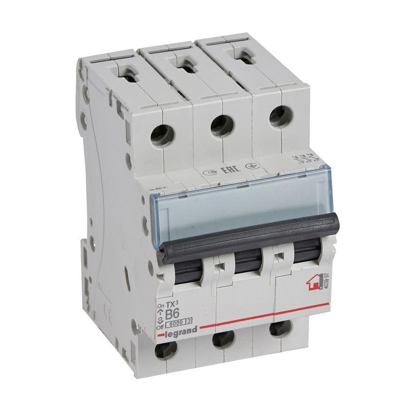 Товар Выключатель автоматический модульный 3п B 6А 6кА TX3 6000 3мод. 400В Leg 403997 доступен с доставкой по г. Санкт-Петербург, Ленинградской области и территории РФ, или самовывозом.