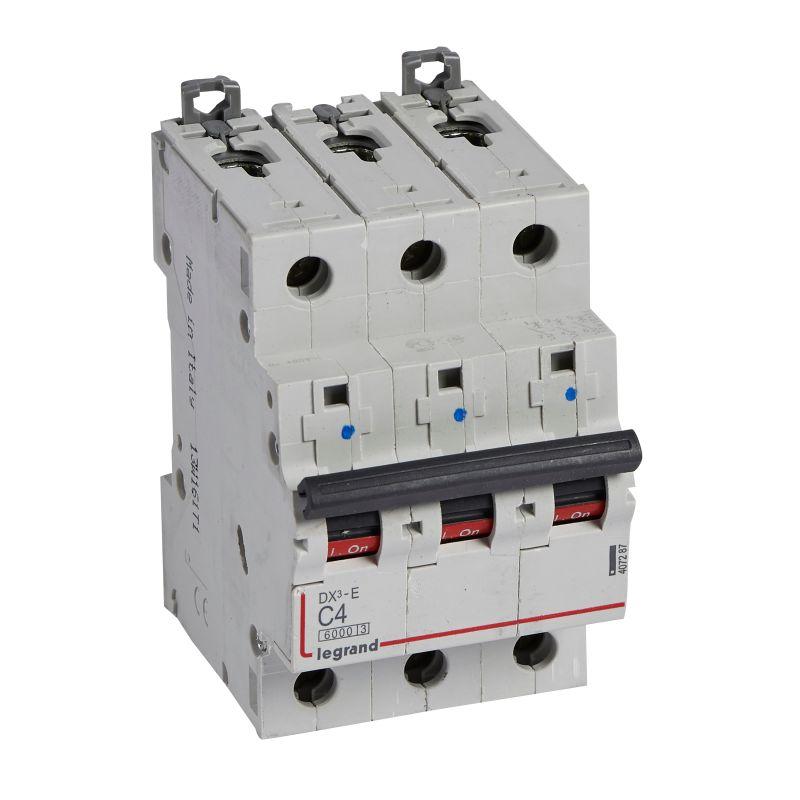 407287 | Выключатель автоматический модульный 3п C 4А 6кА DX3-E 6000 3мод. 230/400В Leg