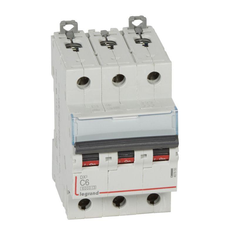 407855 | Выключатель автоматический модульный 3п C 6А 10кА DX3 6000 3мод. 400В Leg