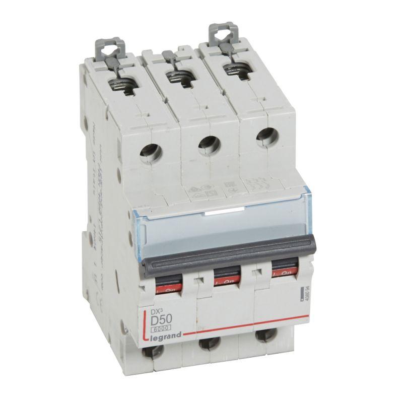 Товар Выключатель автоматический модульный 3п D 50А 10кА DX3 6000 3мод. 400В Leg 408094 доступен с доставкой по г. Санкт-Петербург, Ленинградской области и территории РФ, или самовывозом.