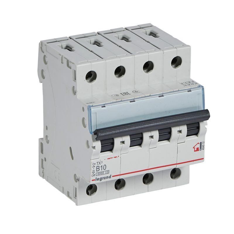 404012 | Выключатель автоматический модульный 4п B 10А 6кА TX3 6000 4мод. 400В Leg