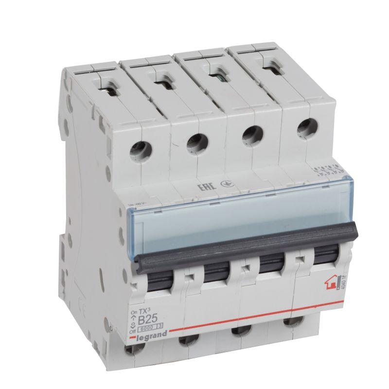 404016 | Выключатель автоматический модульный 4п B 25А 6кА TX3 6000 4мод. 400В Leg
