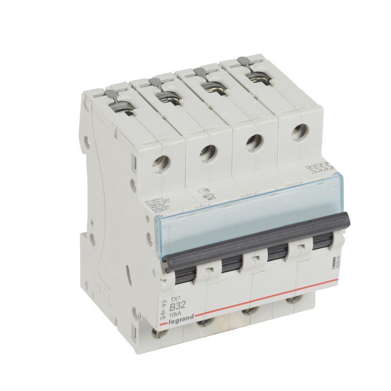 403905 | Выключатель автоматический модульный 4п B 32А 10кА TX3 6000 4мод. 400В Leg