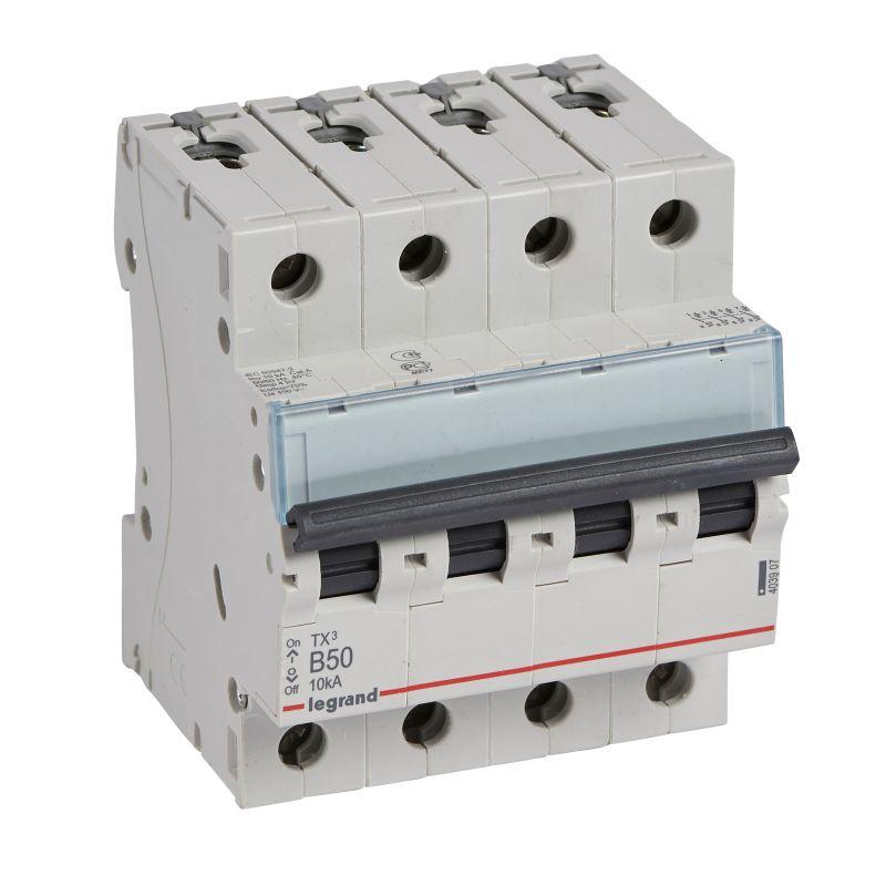 403907 | Выключатель автоматический модульный 4п B 50А 10кА TX3 6000 4мод. 400В Leg