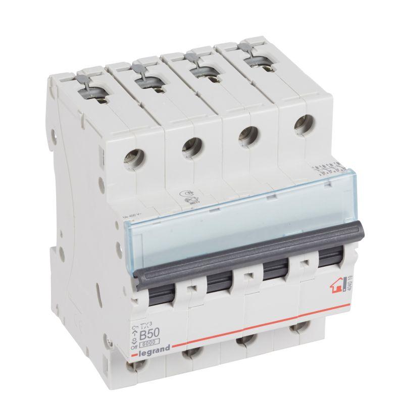 404019 | Выключатель автоматический модульный 4п B 50А 6кА TX3 6000 4мод. 400В Leg